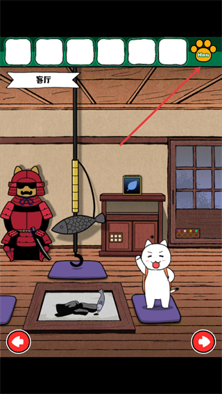 2、在客廳場景點擊右上角【Hints】按鈕,進入提示界面。