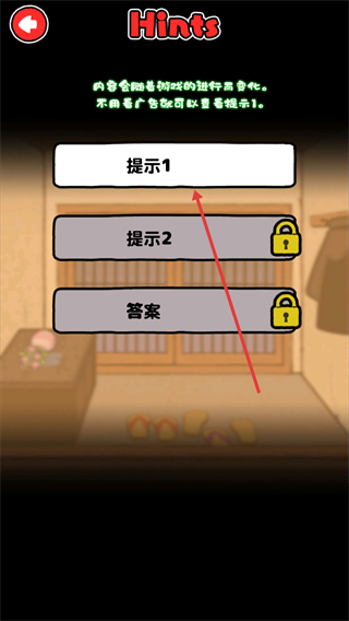 3、在提示界面點擊【提示1】選項,查看游戲提示。