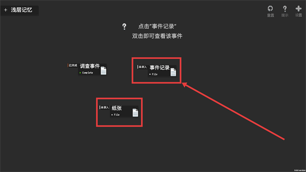 2、在調(diào)查界面點擊【調(diào)查事件】文件,推進調(diào)查進程。