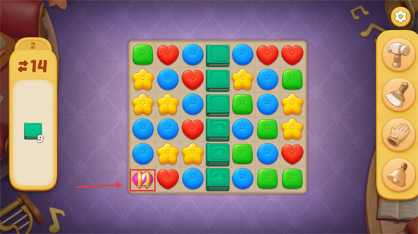 1、在消除關(guān)卡中,點擊【特效道具】可觸發(fā)范圍消除,快速收集目標(biāo)【綠色書本】,同時減少步數(shù)消耗以推進(jìn)關(guān)卡進(jìn)度。