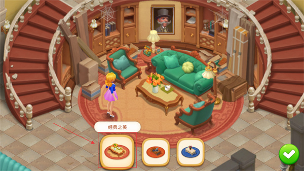 3、在場景裝扮環(huán)節(jié),選擇【經(jīng)典之美】風(fēng)格的家具進(jìn)行布置,完成場景美化以解鎖后續(xù)區(qū)域與劇情。