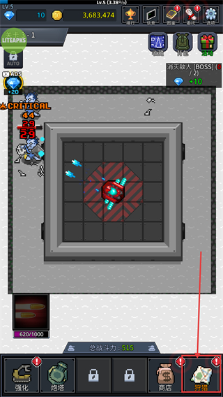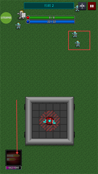 3、進入【掃前2】關(guān)卡后,依托炮塔自動攻擊怪物,同時留意【662/1000-彈藥】剩余量,保障防御持續(xù)有效。
