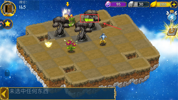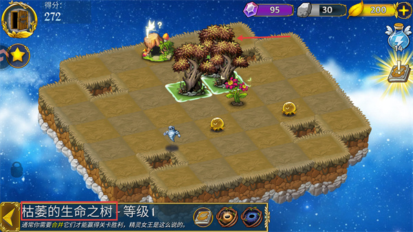 4、遇到【枯萎的生命之樹-等級1】時記住關(guān)鍵提示【通常你需要合并它們才能贏得關(guān)卡勝利】。
