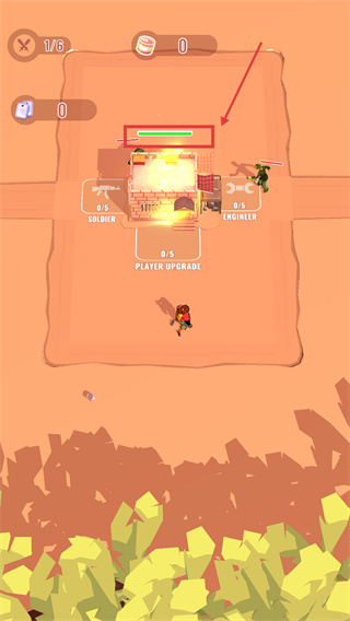 2、關(guān)注建筑上方的綠色進(jìn)度條,優(yōu)先收集資源解鎖【SOLDIER-0/5】,提升防御能力應(yīng)對(duì)敵方單位。