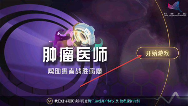 1、進入【腫瘤醫(yī)師】游戲前,需勾選同意相關(guān)協(xié)議,點擊界面的【開始游戲】按鈕,即可進入幫助患者戰(zhàn)勝病魔的診療流程。