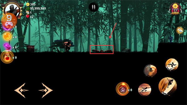 3、關(guān)卡內(nèi)注意紅框標(biāo)記的荊棘區(qū)域,注意躲避,保留狀態(tài)應(yīng)對后續(xù)的敵人。