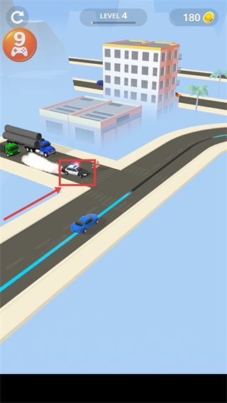 2、在【LEVEL-4】關(guān)卡中遇到【警車】時,需靈活調(diào)整路線避開攔截,同時積累【180-金幣】提升收益。