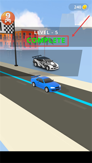 4、達(dá)成【LEVEL-5-COMPLETE】后,可解鎖新車輛與關(guān)卡,注意查看結(jié)算界面的【75%-進(jìn)度】以規(guī)劃后續(xù)策略。