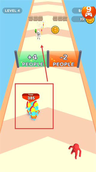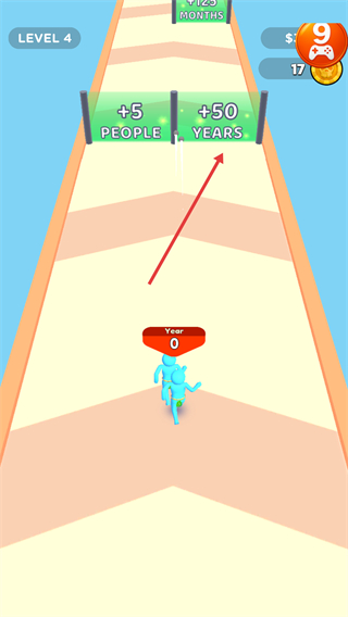 2、能力提升后,將新增一個(gè)角色,操控角色移動(dòng),優(yōu)先收集【+50-YEARS】增益,提升核心數(shù)值推進(jìn)關(guān)卡。