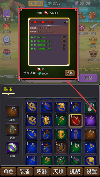4、消耗鉆石和金幣洗練【誅仙-無暇-靈巧戒指】,獲取暴擊攻速等屬性提升裝備品質(zhì)與戰(zhàn)力。