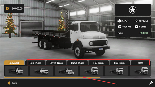 4、在車輛選擇界面,可切換【Box-Truck】【Cattle-Truck】等不同類型車輛,不同車輛適配不同運輸任務。