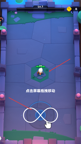 1、通過滑動下方遙感,控制角色在場景內(nèi)移動。