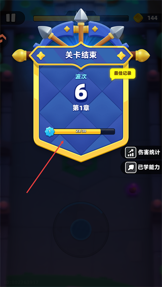 4、關(guān)卡結(jié)束后會顯示當(dāng)前波次與章節(jié)進(jìn)度,同時(shí)可查看本次關(guān)卡的最佳記錄。