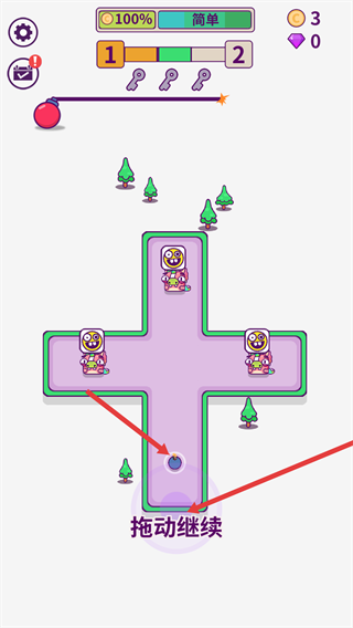 1、按照提示滑動(dòng)屏幕,控制炸彈。