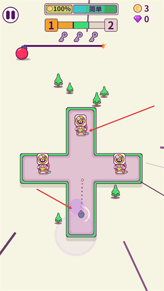 3、多樣道具裝備體系助力闖關(guān),解鎖后可借助道具特性提升炸彈威力或改變飛行狀態(tài),為突破圍堵、炸毀寶箱提供多元助力。