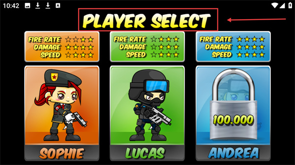 1、在【PLAYER-SELECT】界面,優(yōu)先選擇【SOPHIE】角色,其【FIRE-RATE】屬性較高,適合初期戰(zhàn)斗。
