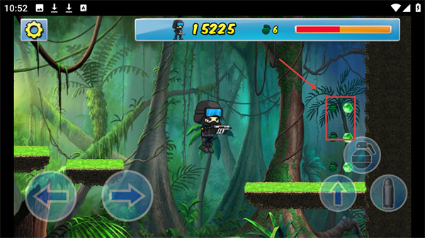 4、切換【LUCAS】角色后,收集場景中的綠色道具,提升戰(zhàn)斗能力,同時積累分數(shù)至【15225】以解鎖更多內(nèi)容。